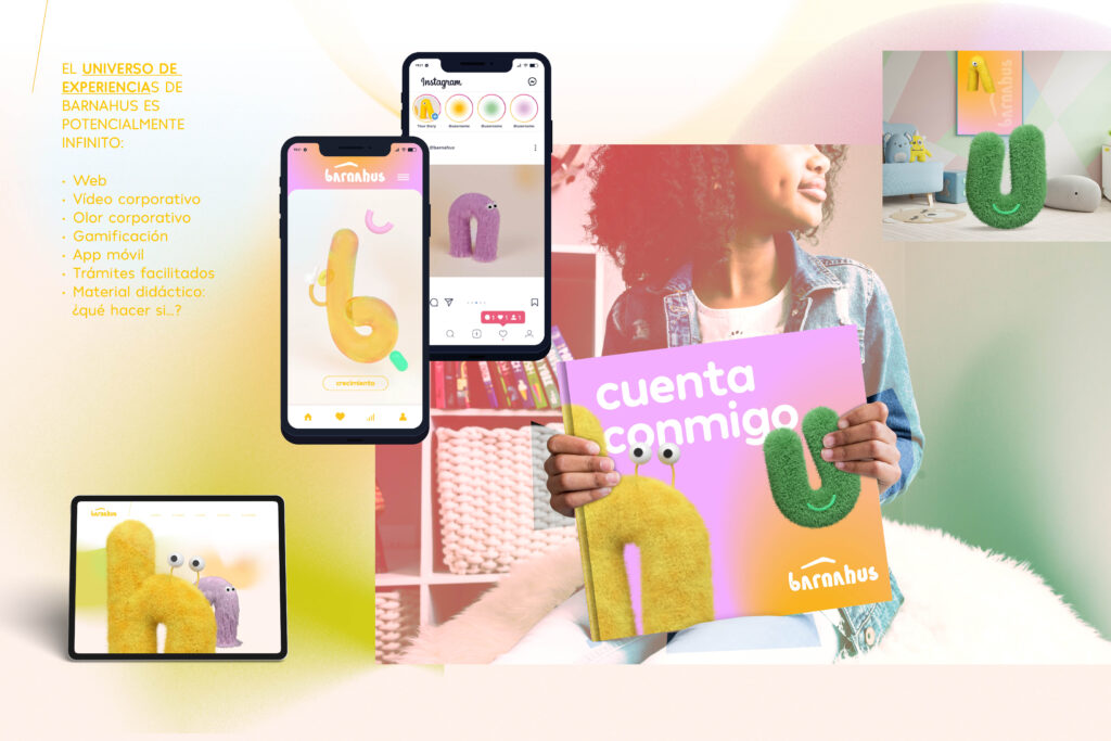 Barnahus es un modelo FLEXIBLE que se adapta a cada una de las víctimas de abuso sexual, niños, niñas y adolescentes víctimas. Tanto el ambiente, como los elementos de entretenimiento y los profesionales especializados están destinados a poner al niño en el centro. Por eso nos hemos apoyado en la visión milenaria del FENG-SHUI; que ve el espacio como un entorno seguro que aporta paz, bienestar, equilibrio, para construir la Marca para Euskadi. Hemos desarrollado este concepto de FENG SHUI en las 4 DIMENSIONES que hemos creado para este universo: Dimensión Visual, Espacial, Emocional y Verbal. Además se han creado unos personajes marca que son la metáfora visual que les ayuda a conectar la dura realidad con este universo reparador.