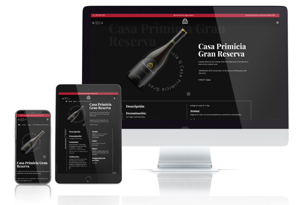 La prestigiosa bodega de Laguardia, Bodegas Casa Primicia, quería plasmar todo su origen e historia en una web acorde a la calidad de sus vinos. Realizamos una visita a las bodegas para descubrir su historia y catar sus vinos, así como su servicio de restauración. Tras esta visita propusimos un rediseño completo de la web, que acerca a todos los usuarios a la experiencia de visitar la bodega y expone todos sus vinos de una forma muy atractiva en la tienda online. Es posible comprar online cualquier producto del amplio catálogo de la bodega, así como reservar las visitas guiadas a la misma.