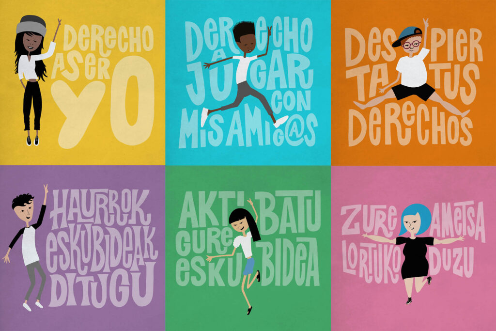 Campaña de sensibilización del buen trato a la infancia y la adolescencia. Ilustraciones y diseño de letterings con frases aportadas por alumnos y alumnas de primaria.