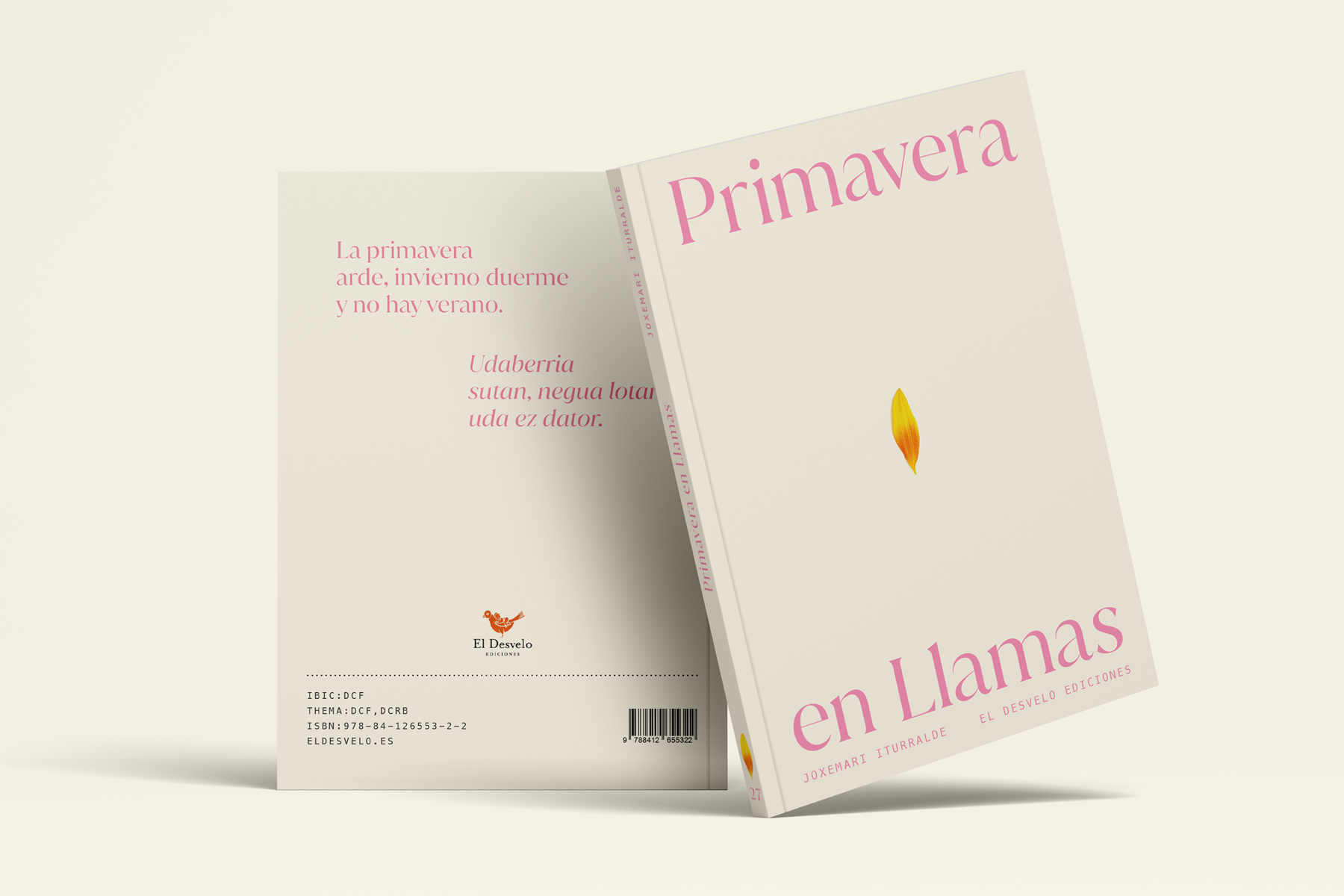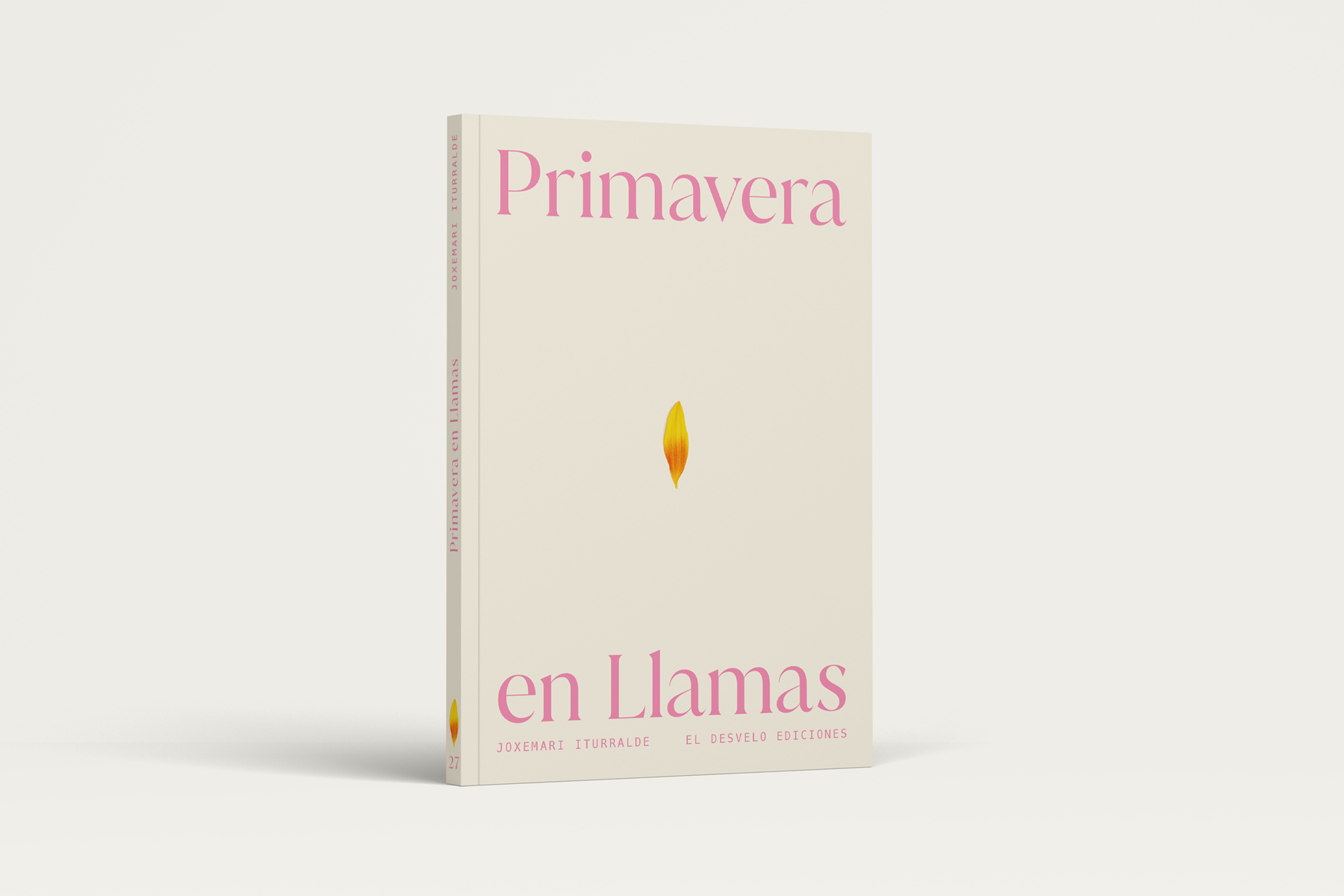 Simplicidad y significado son las bases del diseño de esta portada. Partimos de una idea visual sencilla, donde un pétalo amarillo y naranja se convierte una una llama de fuego. Poseen los mismos colores, el mismo tamaño y, al lado del título, comparten también significado.