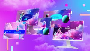 El diseño gráfico, aplicado especialmente a la web, se apoya en un lenguaje visual que combina cielo, nubes, montañas y estratosfera, simbolizando elevación y perspectiva. Esta mezcla de elementos orgánicos y geométricos da lugar a composiciones dinámicas y llenas de movimiento en la principal plataforma de comunicación: la web.