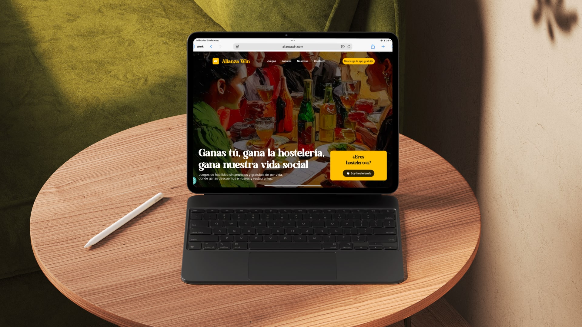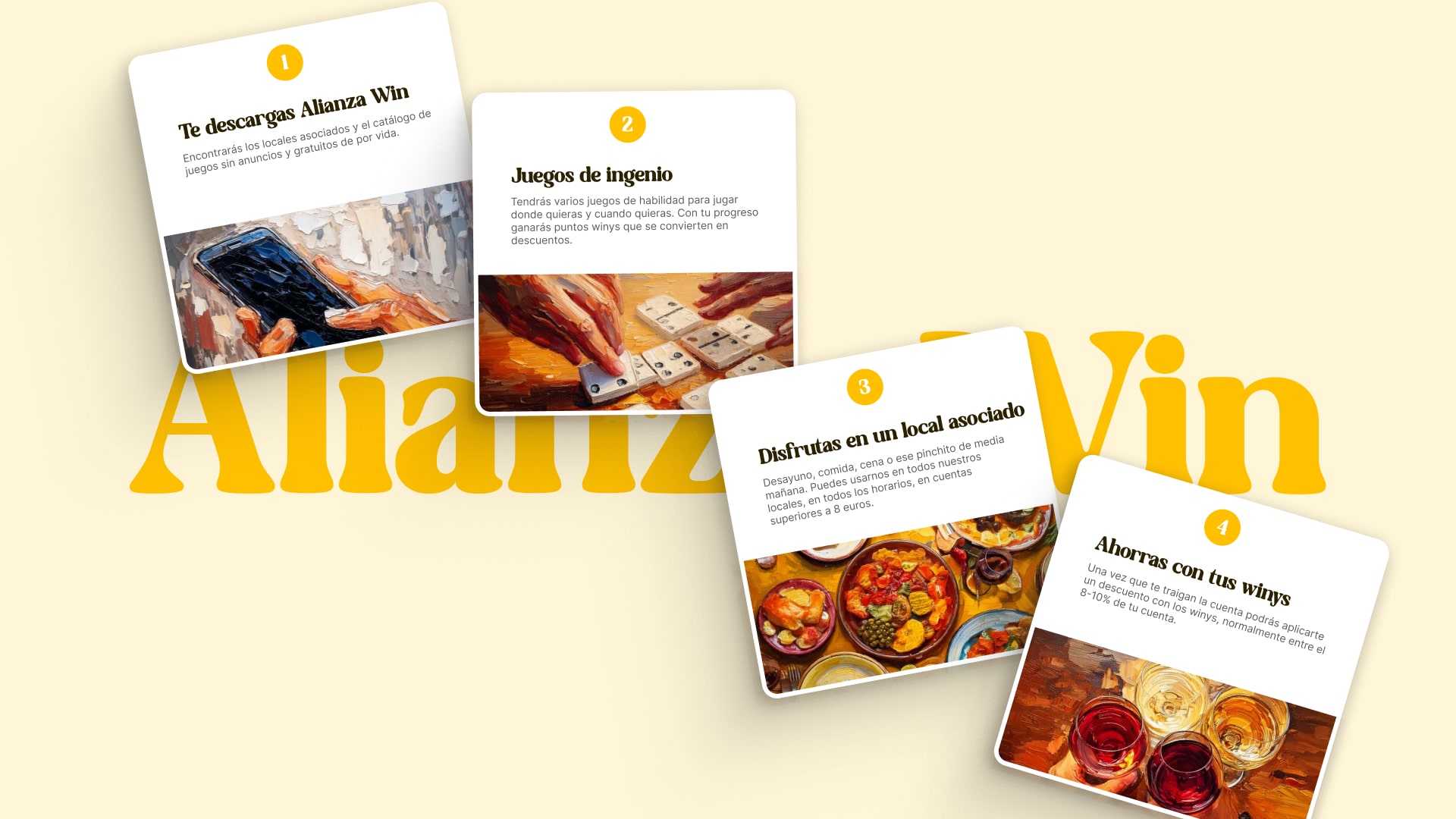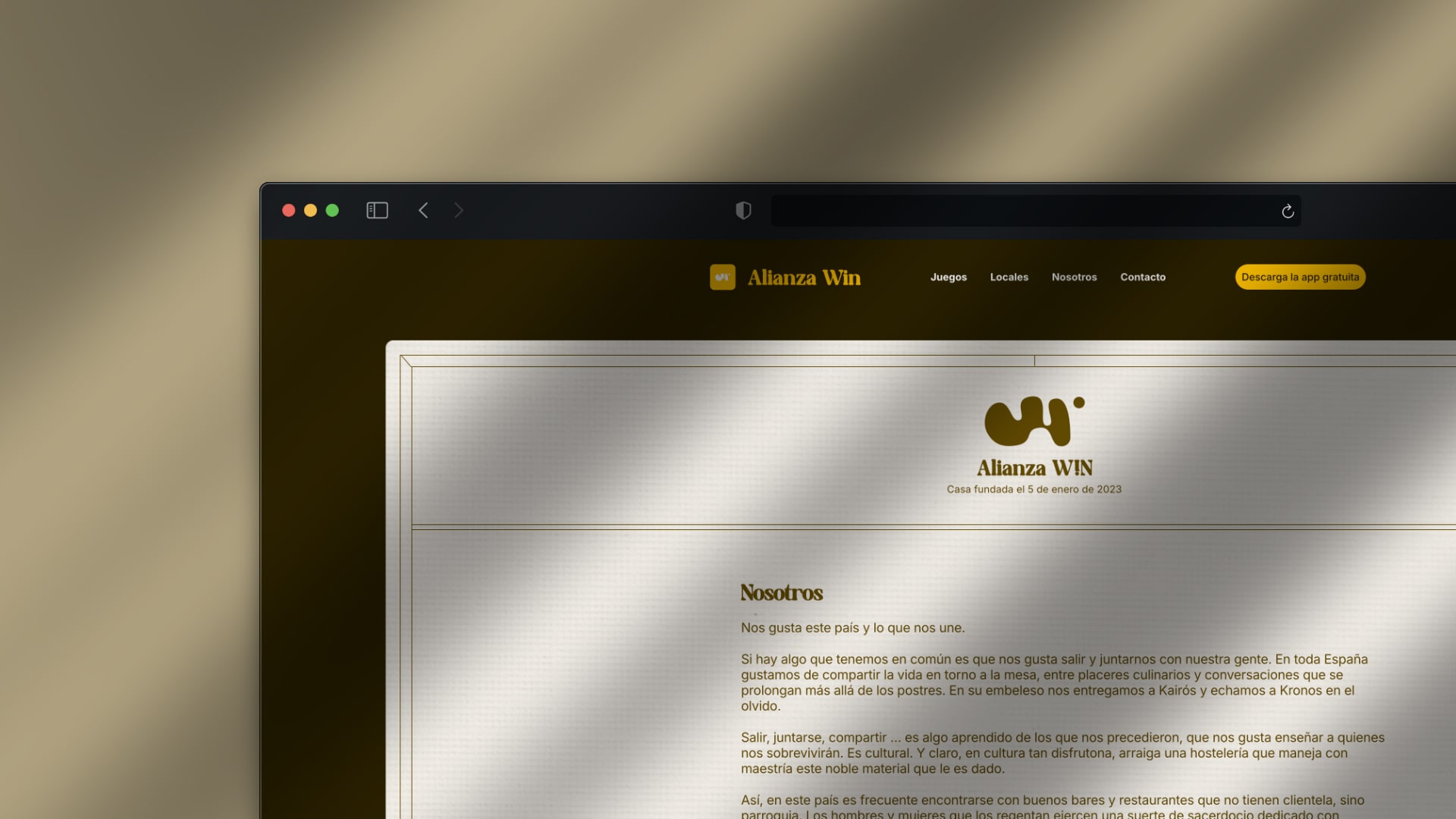 Alianza Win necesitaba trasladar su identidad de marca al mundo digital, creando una presencia web y el diseño de su aplicación móvil. El desafío principal era traducir la filosofía de "rescatar el valor del juego para los humanos" a experiencias digitales que funcionaran para dos audiencias muy diferentes: hosteleros que necesitan información clara y profesional, y usuarios finales que buscan diversión y conexión social. El sector hostelero español requería una aproximación que equilibrara la seriedad profesional con la calidez mediterránea. Necesitábamos crear una experiencia digital que alejara la marca de la frialdad tecnológica típica del sector, acercándola al calor humano de la cultura hostelera española. La web debía establecer credibilidad con profesionales del sector mientras que el diseño de la app necesitaba conectar emocionalmente con usuarios que buscan autenticidad y espontaneidad. El objetivo era materializar digitalmente esa filosofía de "traer del norte al sur" de la frialdad luterana al calor mediterráneo.