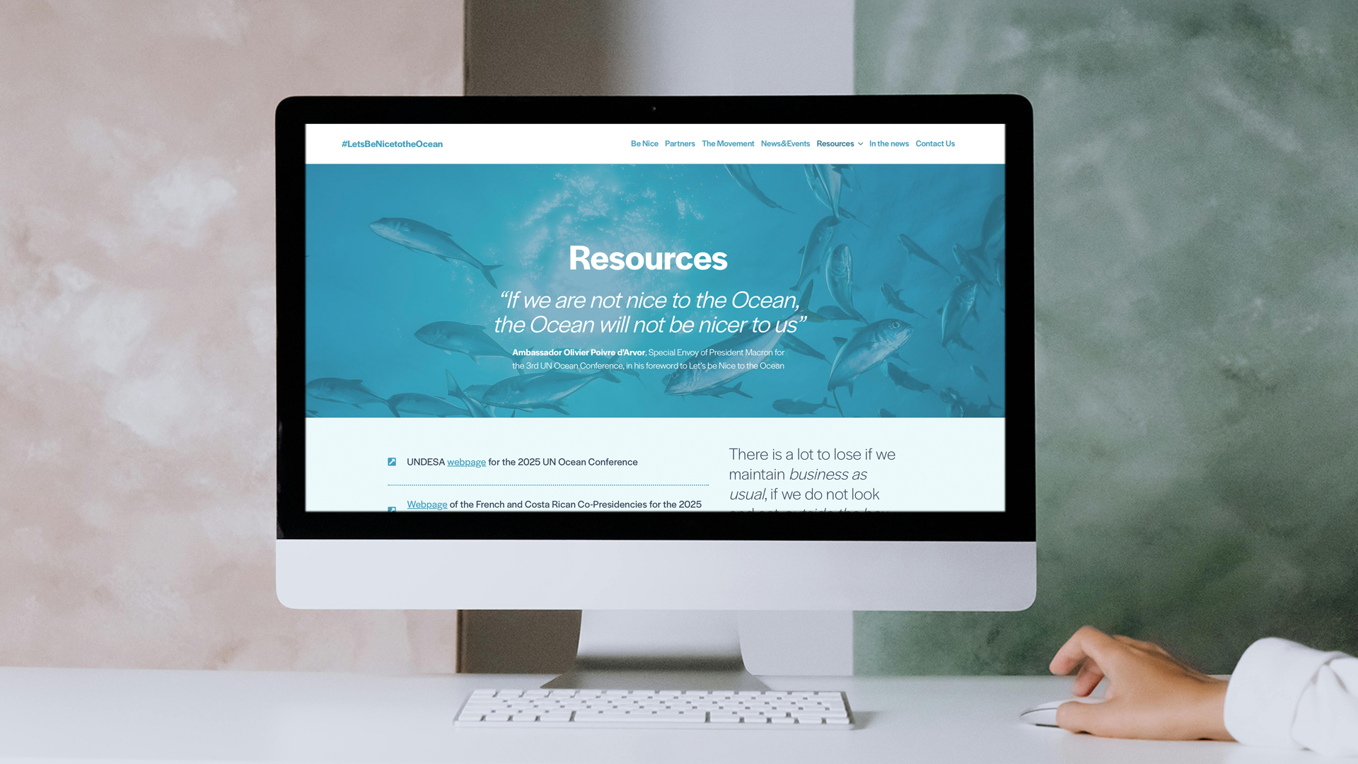 Todo debía girar sobre el concepto 'Let's Be Nice to the Ocean' para que alrededor de este eslogan (proclama) se genere una plataforma social reivindicativa, lanzada en 2023, para exigir y proponer un nuevo marco ético y legal que proteja el océano y sus especies. A través de la web letsbenicetotheocean.org, este proyecto debía acompañar un camino de concienciación global que culminará en la Conferencia del Océano 2025 en Niza (Francia).