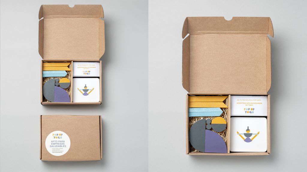 Además del proyecto de marca, planteamos una estrategia de marketing directo dirigida a empresas, con el objetivo de generar una comunicación cercana y efectiva. Esta acción se materializa en un packaging especial que incorpora piezas interactivas y lúdicas, invitando a “construir” las Asanas. Un recurso didáctico que refuerza el mensaje principal: adoptar hábitos saludables ayuda a alcanzar objetivos personales y colectivos, y estos beneficios pueden demostrarse con datos tangibles dentro del entorno laboral.