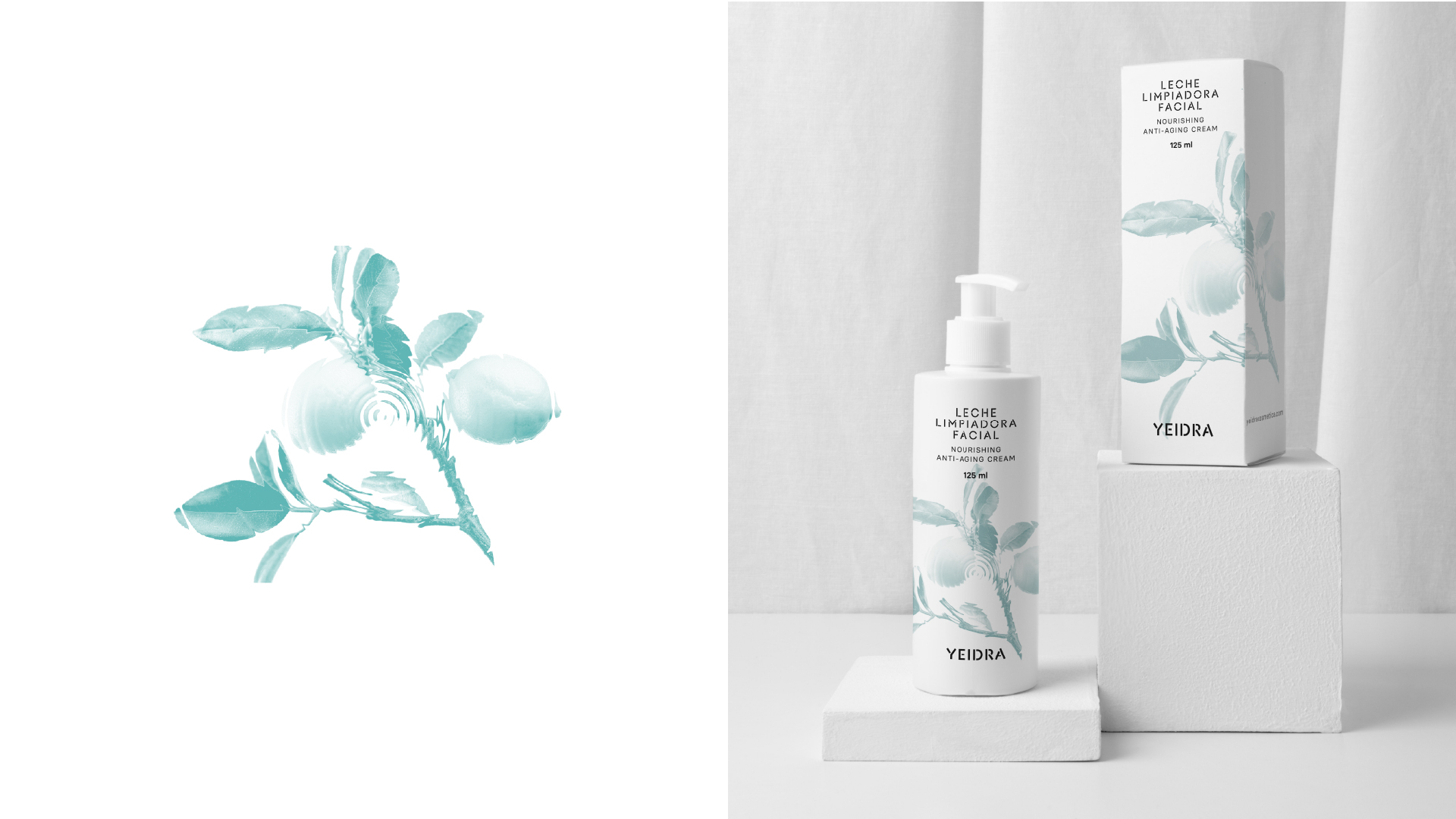 Conceptualmente mantenemos los dos pilares sobre los que se asentaba la marca en su identidad anterior, en la que fusionaban una hoja de hiedra con una gota de agua en el imago (YEIDRA= ingredientes naturales + hidrolatos).