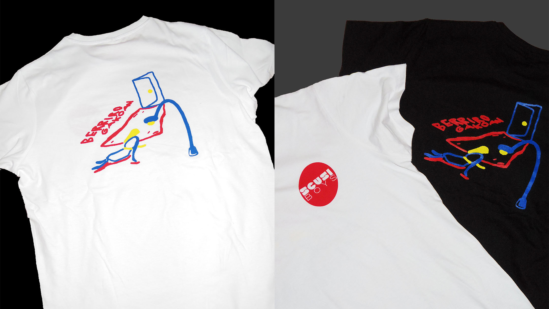 A partir de la creación de la carátula, desarrollamos las camisetas, que tuvimos que adaptar a tres colores en serigrafía y que se viera tanto sobre negro como sobre blanco.